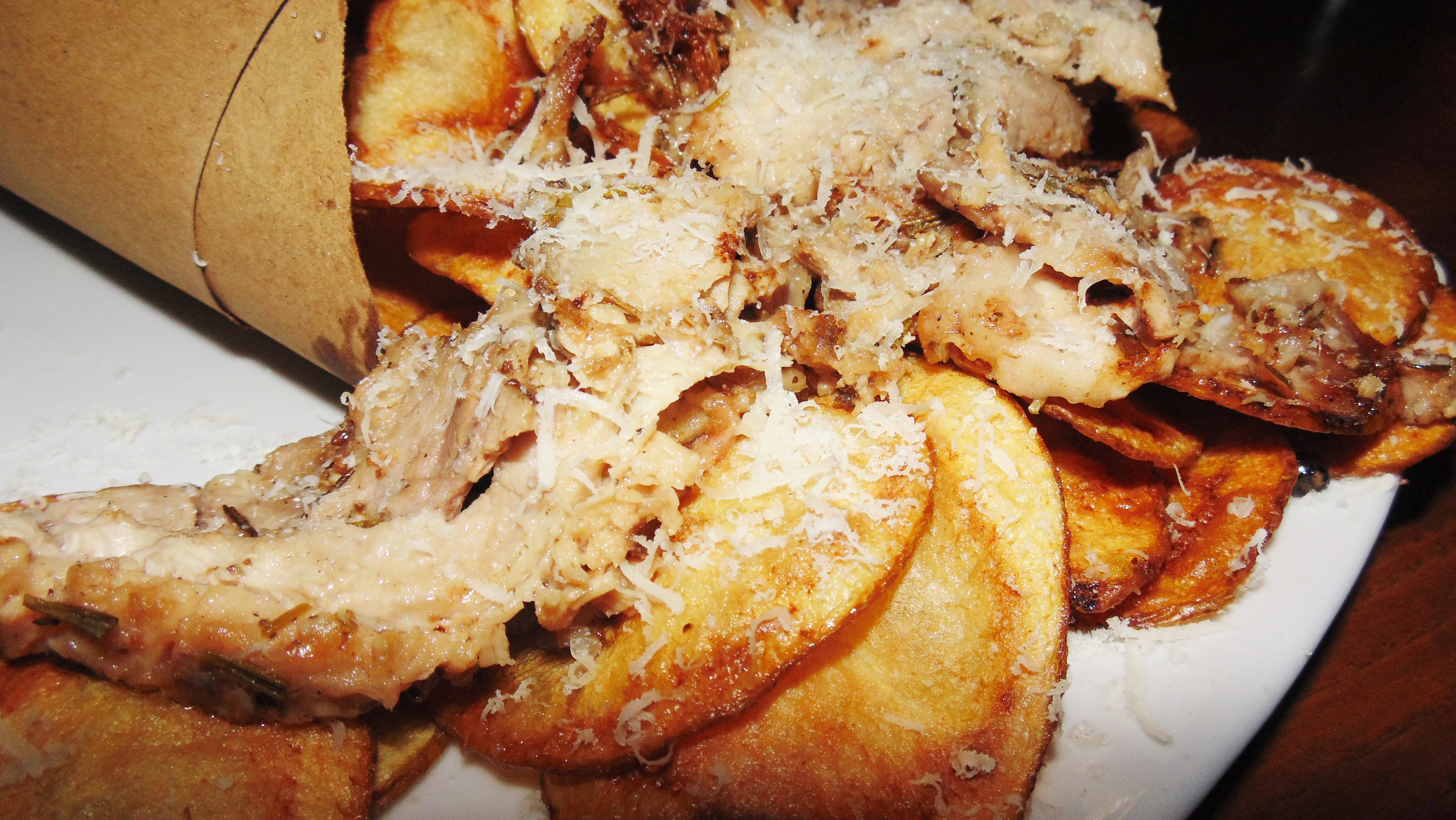 cuoppo con patate olandesi chips, formaggio di fossa e porchetta di ariccia.